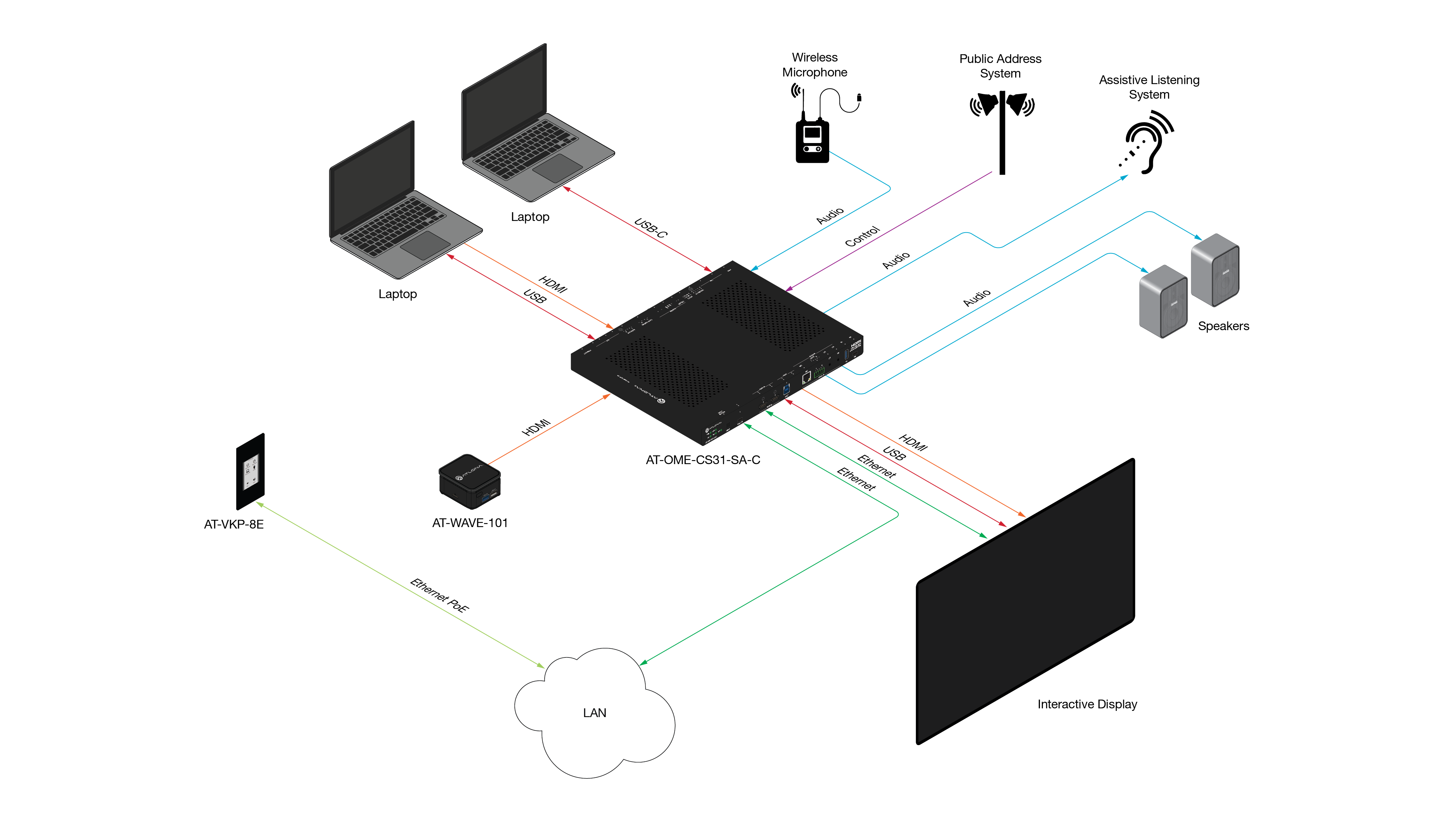 Das Atlona AT-OME-CS31-SA-C ist ein AV-Präsentations- und Kollaborationssystem der Omega™-Serie mit AV-Switching, USB-Routing, Audiomischung, Verstärkung und Steuerung, das sich ideal für moderne Klassenzimmer und Konferenzräume eignet.