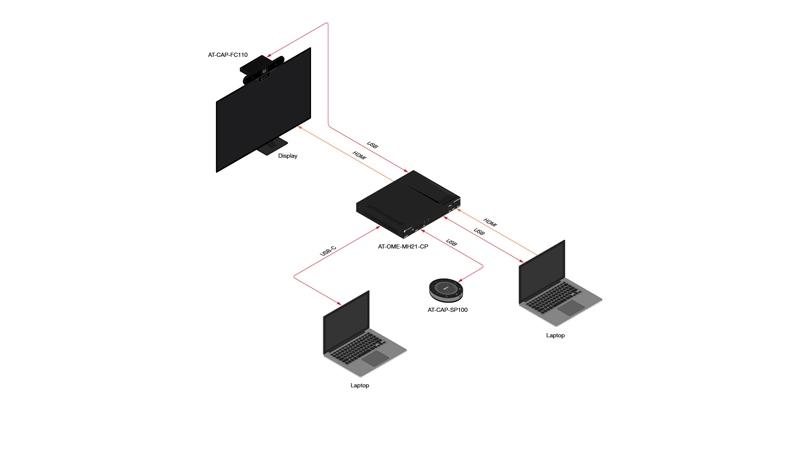 Der Atlona AT-OME-MH21-CP ist ein kompakter, vielseitiger Switcher mit HDMI- und USB-C-Eingängen. Er ist ideal für Huddle Rooms und kleine Besprechungsräume.