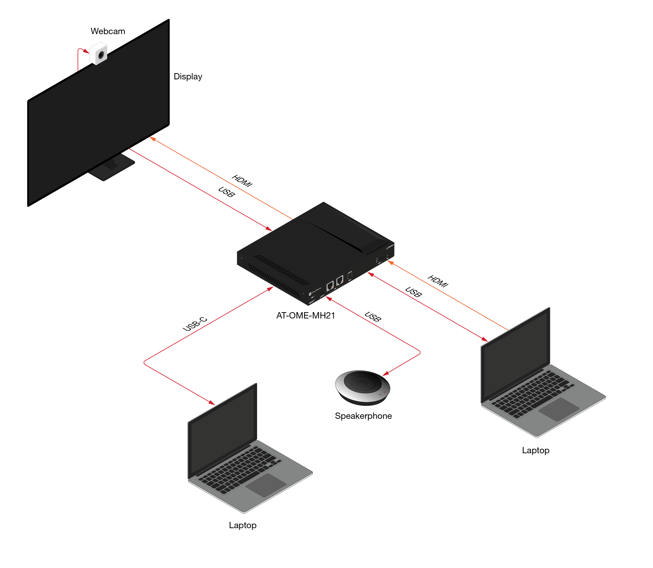 Der Atlona AT-OME-MH21 ist ein kompakter, vielseitiger Switcher mit HDMI- und USB-C-Eingängen. Er ist ideal für Huddle Rooms und kleine Besprechungsräume.