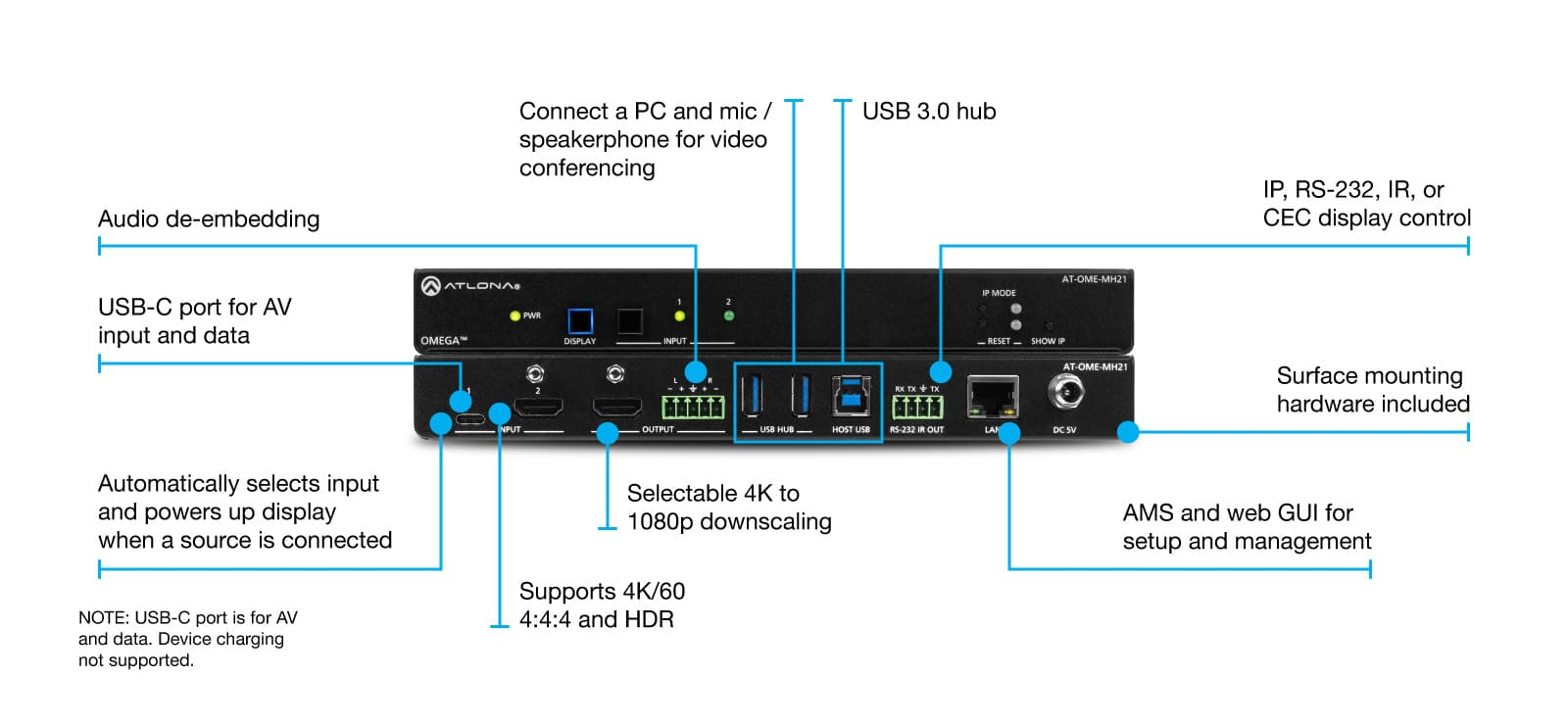 Atlona AT-OME-MH21 Switcher, USB-C X HDMI
