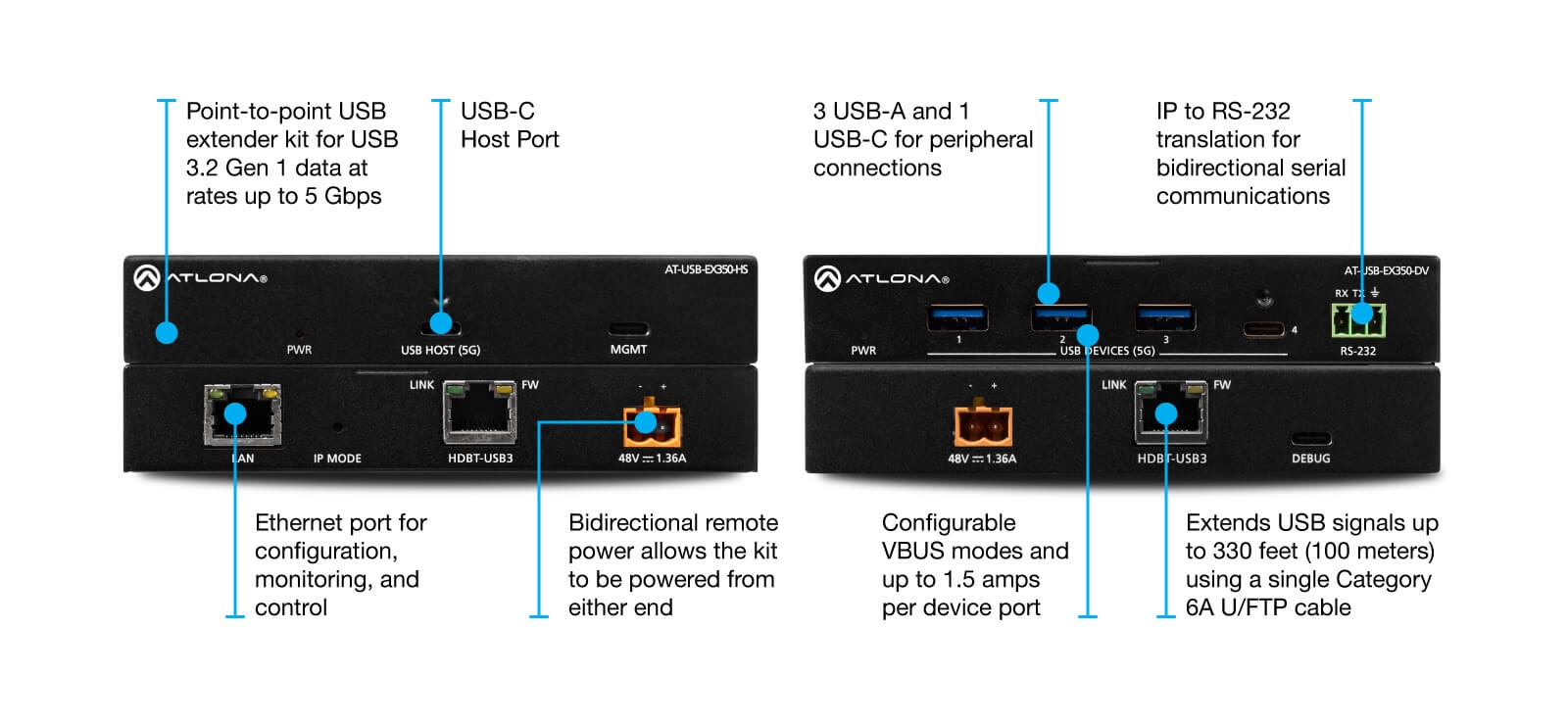 Atlona AT-USB-EX350-KIT USB 3.2 Gen1 Extender, HDBaseT