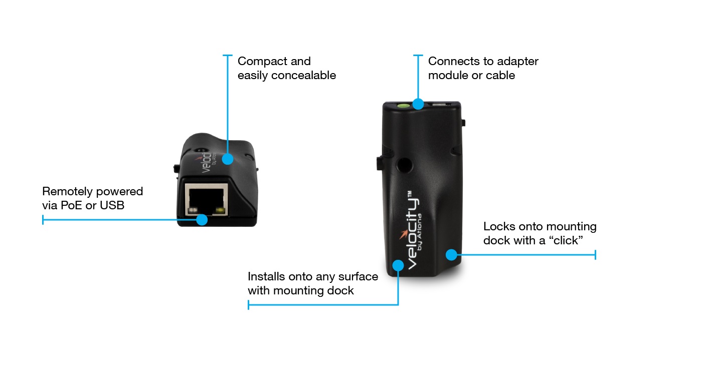 Das Atlona AT-VCC-RS232-KIT ist ein Zubehör zur Konvertierung zwischen IP- und RS-232-Steuerbefehlen für das Velocity ™ -Steuerungssystem. Es handelt sich um einen kompakten Konverter, der schnell und unkompliziert eingerichtet und platziert werden kann. Die Primäreinheit des Atlona AT-VCC-RS232-KITs kann mit einem einfachen ‚Klick‘ verriegelt und somit sicher auf jeder Oberfläche angebracht werden. Die Stromversorgung des Atlona AT-VCC-RS232-KITs erfolgt per PoE – oder optional über eine lokale USB-Stromquelle.