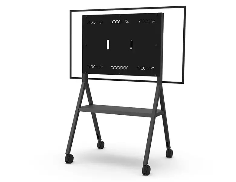 Der EXYO 4 von Axeos ist ein mobiler Bildschirmständer aus schwarz lackiertem Stahl, perfekt geeignet für Bildschirme von 55 bis 75 Zoll - egal ob interaktiv oder nicht. Der Wagen ist leicht zu bewegen und bietet trotz ästhetischem und umweltfreundlichem Design dank Rohrsockeln ein einfaches Kabelmanagement und eine perfekte Integration in verschiedenste Anwendungsorte.