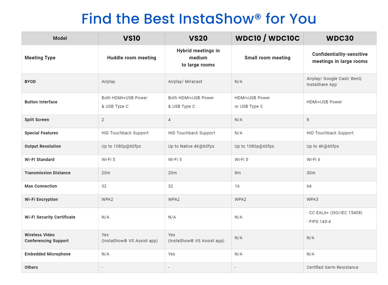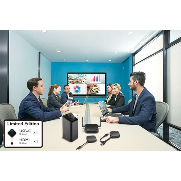 Der InstaShow® WDC10HC von BenQ ist ein hochfunktionales System für drahtlose Präsentationen. Ohne technische Verzögerungen können Präsentationen oder Videowiedergaben reibungslos und unabhängig vom Betriebssystem des verwendeten Laptops in Konferenzen eingebracht werden. Für bis zu 16 Teilnehmer, die sich über eine Reichweite von bis zu 15 Metern auch in großen Räumen verbinden können, ist der InstaShow® WDC10HC in vielen Umgebungen eine ideale Präsentationlösung.