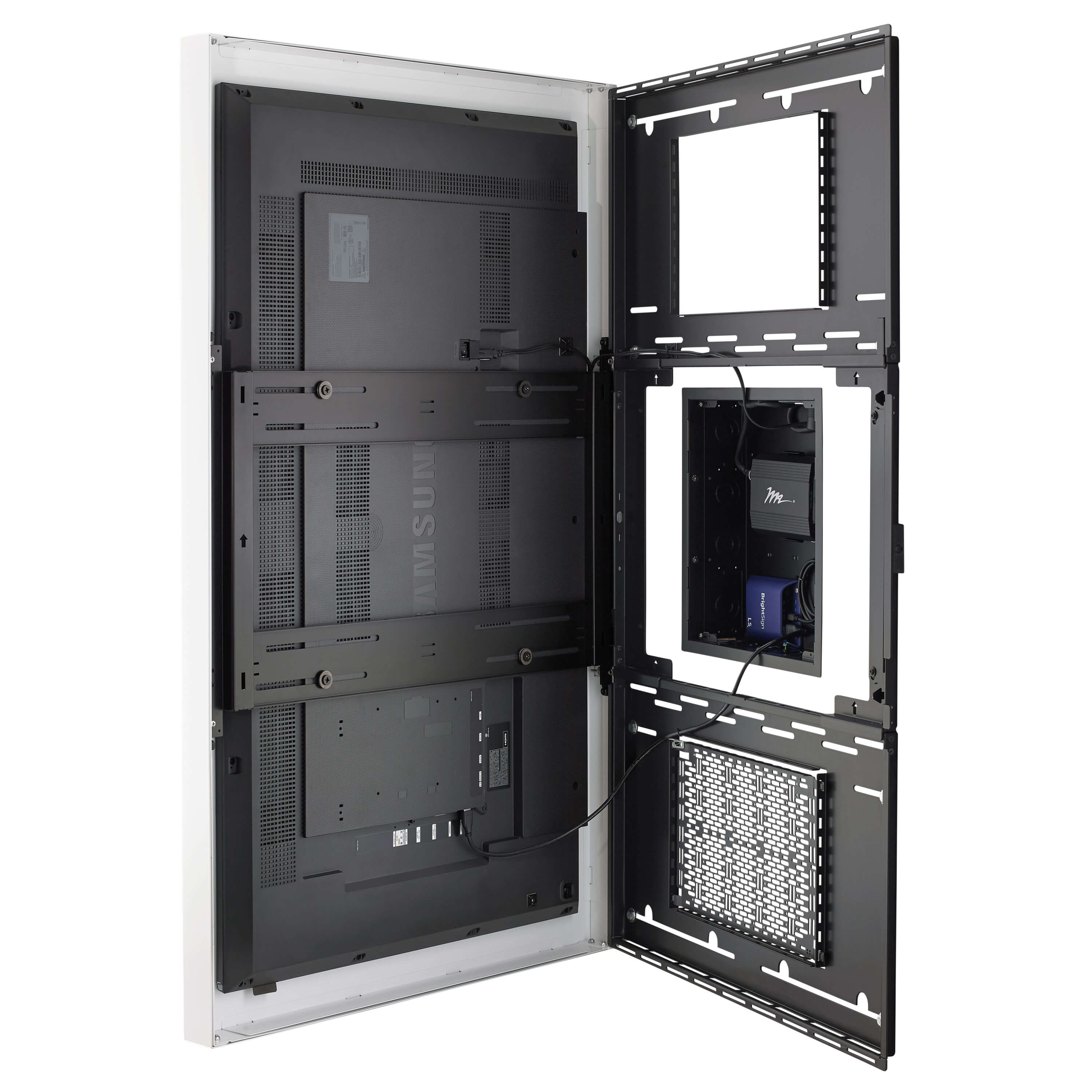 Der Impact ™ On-Wall Kiosk bringt neue Möglichkeiten auf dem Markt für Digital Signage-Gehäuse und sorgt gleichzeitig für ein elegantes Aussehen. Ein tiefenverstellbarer Außenrahmen ermöglicht die Verwendung einer Vielzahl von Displays. Dank der umkehrbaren Scharniere werden Installations- und Wartungsschwierigkeiten vermieden. Zudem bleibt das Display beim Öffnen im Rahmen montiert, was die Wartungszeit verringert.