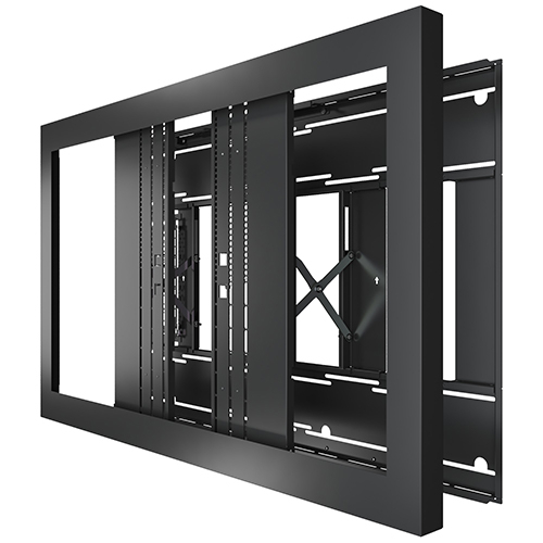 Der Chief Impact On-Wall Kiosk bietet flexible Installationsmöglichkeiten für 55-Displays im Querformat. Der Kiosk ist um 8 (20,3 cm) tiefenverstellbar, die Displayfassung wird dafür mit der Scherenarm-Technik nach vorne ausgefahren.