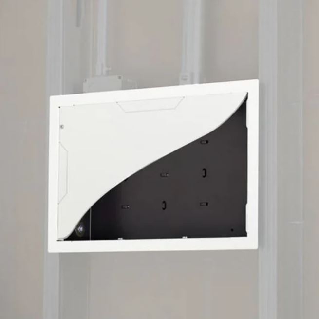 Der Chief PAC525 vereinfacht die Installation von Flachbildschirmen, indem er einen geordneten, versenkten Raum für die Verlegung überschüssiger Kabel und für die Anbringung von Überspannungsschutzgeräten/Netzteilen bietet.