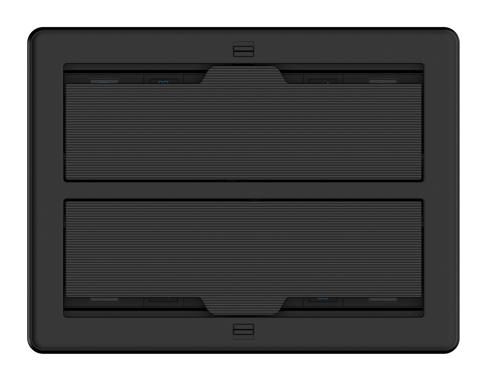 Das passgenaue Design sorgt für ein klares Erscheinungsbild mit bearbeiteten Metalloberflächen, die wahlweise in Schwarz oder einer Metalllegierung erhältlich sind. Modulares Zubehör ermöglicht eine individuelle Konfiguration und schnelle Installation. Alle Anschlüsse befinden sich an der Oberseite, sind gut sichtbar und leicht zugänglich.
