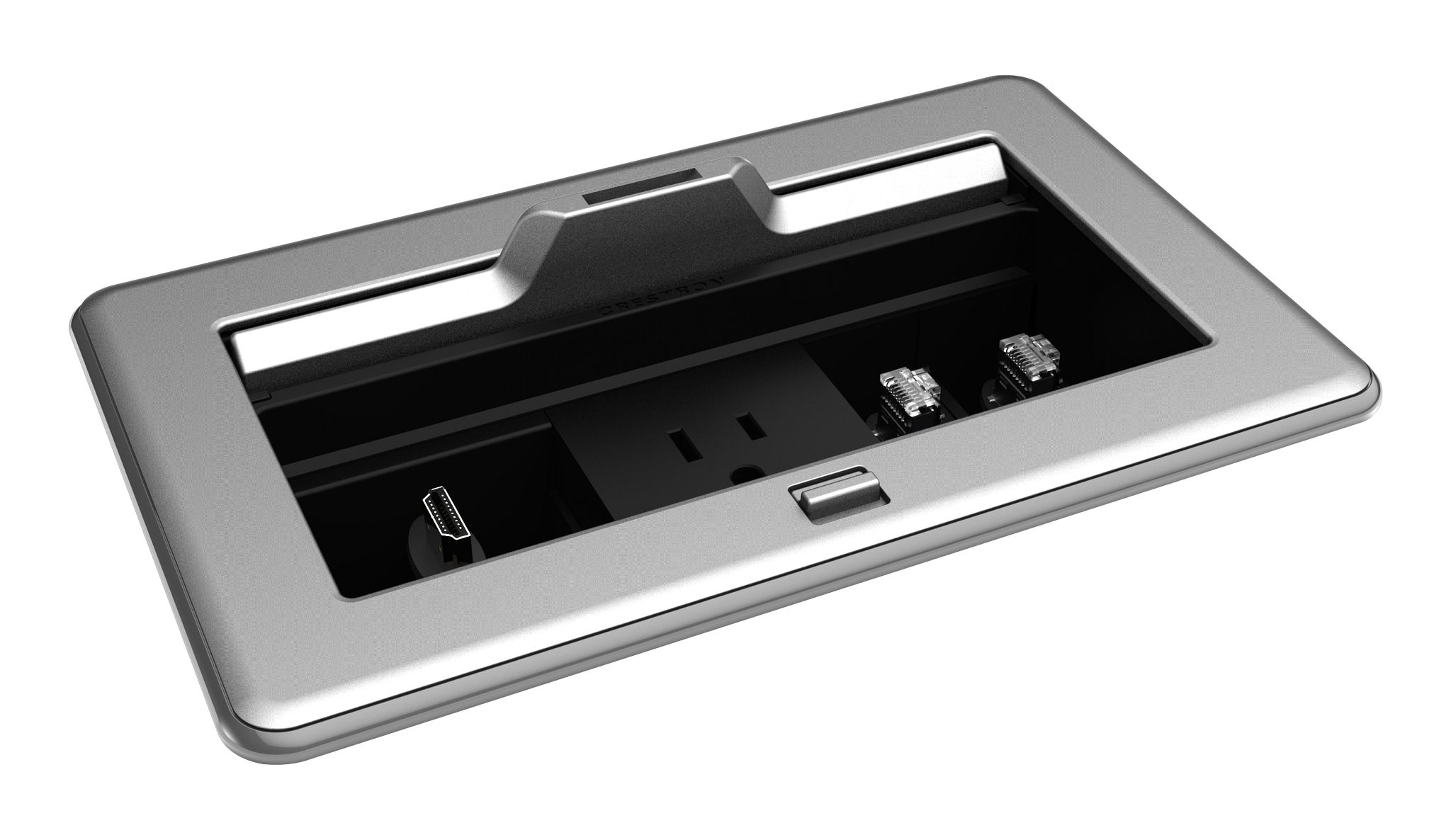 Crestron FT2-202-ELEC-PTL-AL FlipTop™ FT2 Series Cable Management System, 202 Size, Electrical, Pass-Through Lid, Alloy