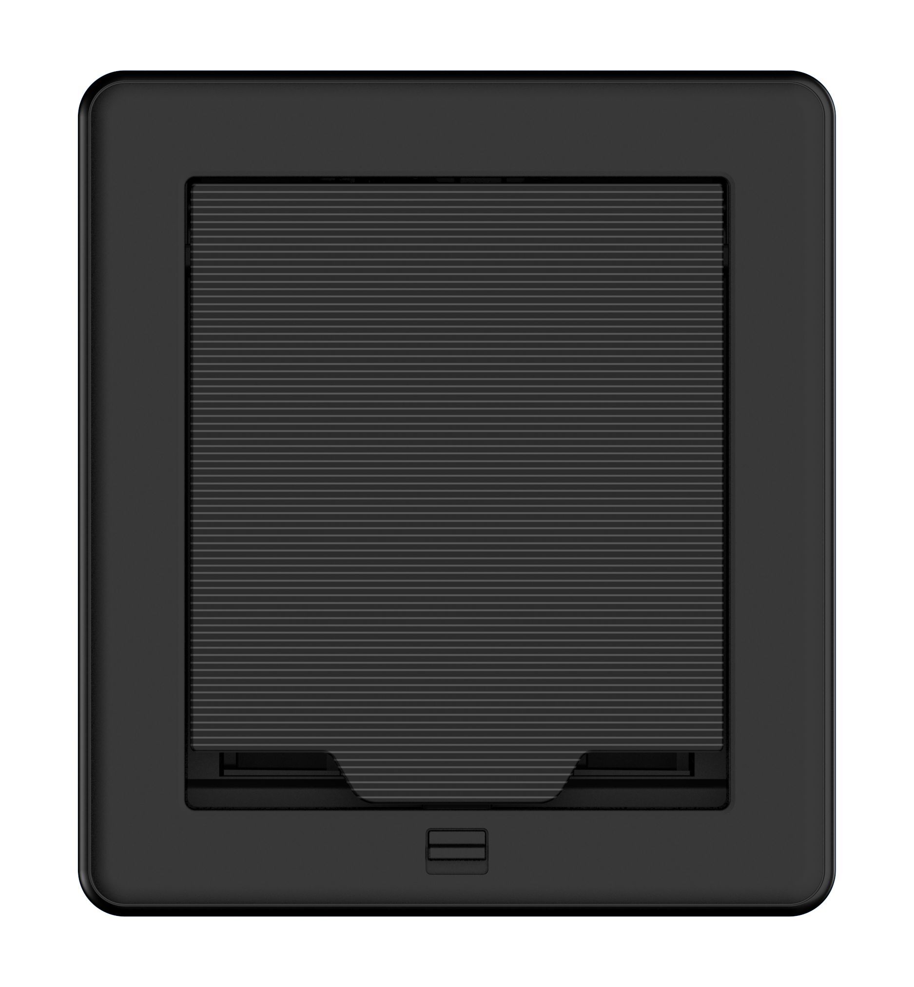 Das präzise Passformdesign sorgt für ein klares Erscheinungsbild mit bearbeiteten Metalloberflächen, die wahlweise in Schwarz oder einer Metalllegierung erhältlich sind. Modulares Zubehör ermöglicht eine individuelle Konfiguration und schnelle Installation. Alle Anschlüsse befinden sich an der Oberseite, sind gut sichtbar und leicht zugänglich. Ein integrierter Stromversorgungsbus ermöglicht die Kompatibilität mit One-Touch-Kabelaufrollern, aktiven Anschlussplatten und USB-Schnelllademodulen. Außerdem ermöglicht er die Hintergrundbeleuchtung aller Symbolsymbole auf den Modulen.