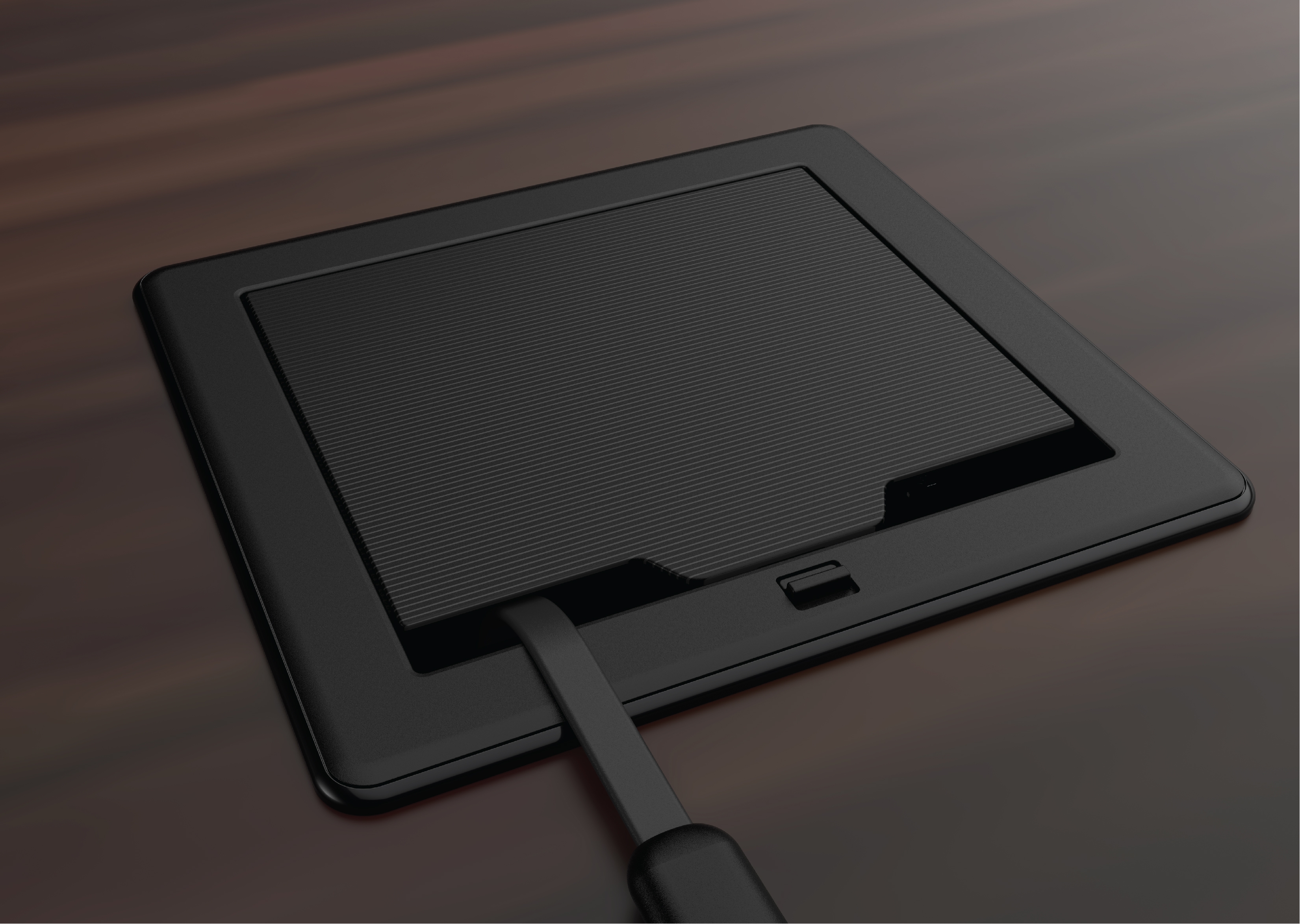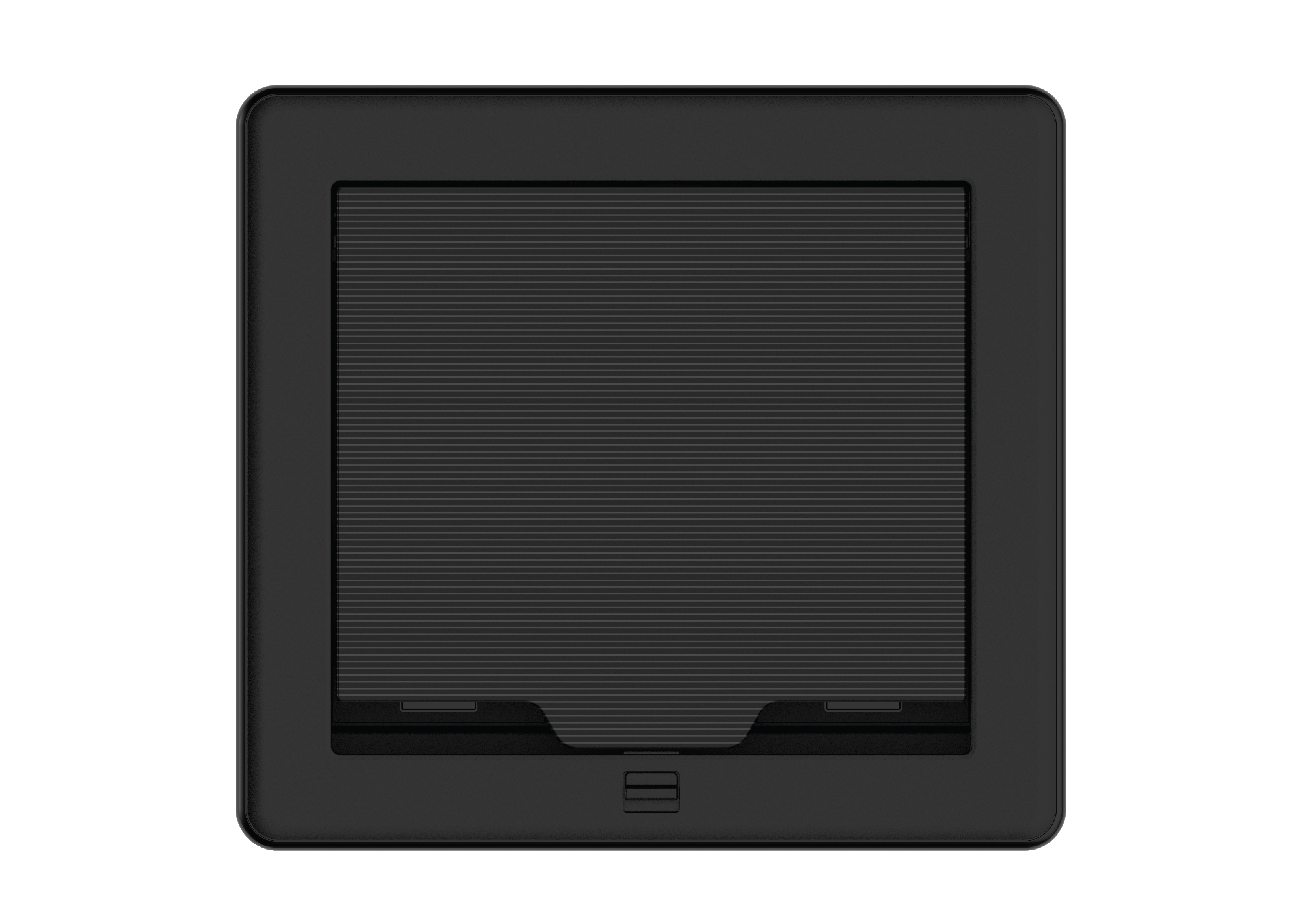Das präzise Passformdesign sorgt für ein klares Erscheinungsbild mit bearbeiteten Metalloberflächen, die wahlweise in Schwarz oder einer Metalllegierung erhältlich sind. Modulares Zubehör ermöglicht eine individuelle Konfiguration und schnelle Installation. Alle Anschlüsse befinden sich an der Oberseite, sind gut sichtbar und leicht zugänglich. Ein integrierter Stromversorgungsbus ermöglicht die Kompatibilität mit One-Touch-Kabelaufrollern, aktiven Anschlussplatten und USB-Schnelllademodulen. Außerdem ermöglicht er die Hintergrundbeleuchtung aller Symbolsymbole auf den Modulen.