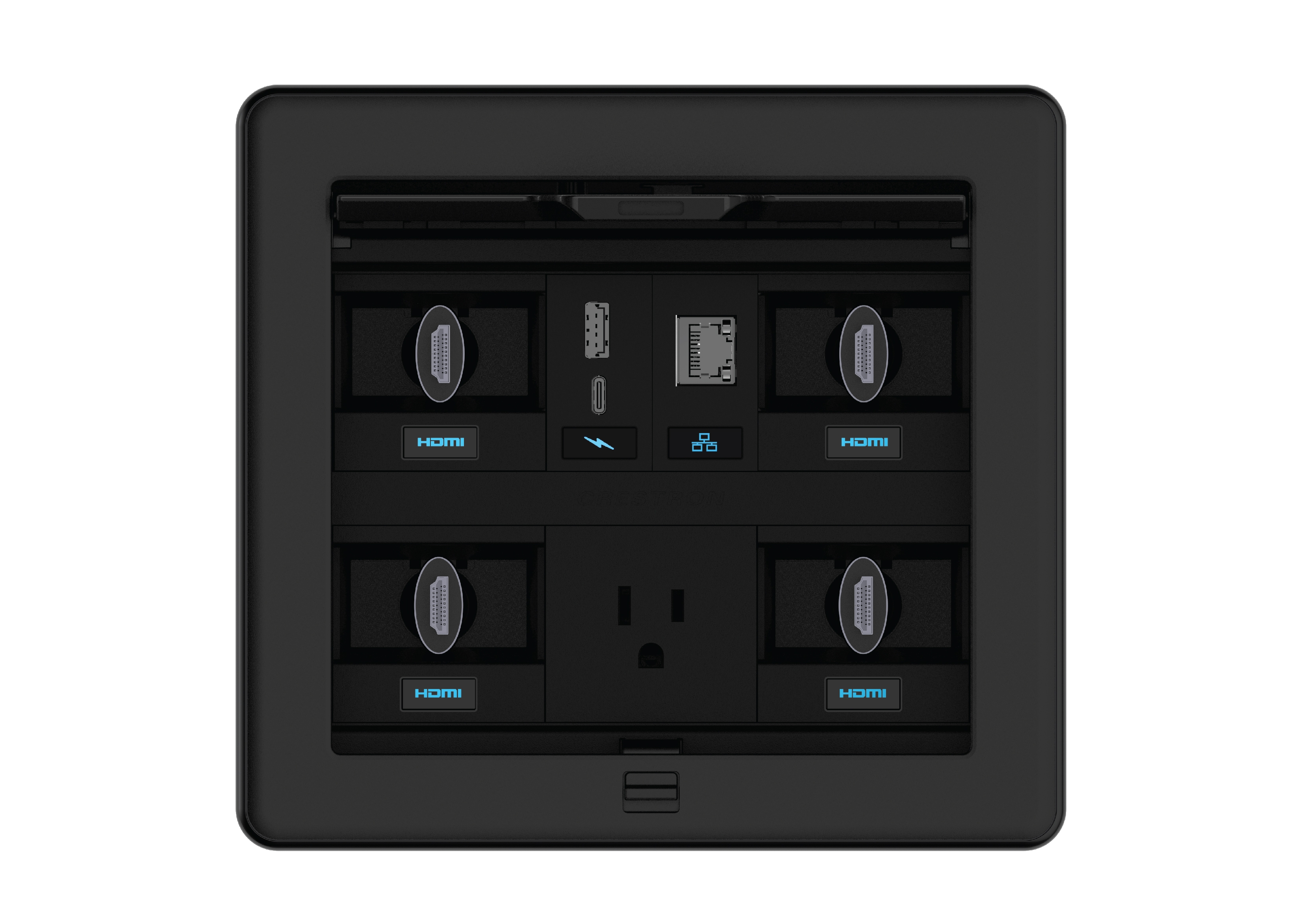 - Optionales modulares Crestron FT2-Zubehör wie Steckdosen, Kabelrückzugssysteme und Keystone-Platten lässt sich einfach installieren und bietet maßgeschneiderte Lösungen3
