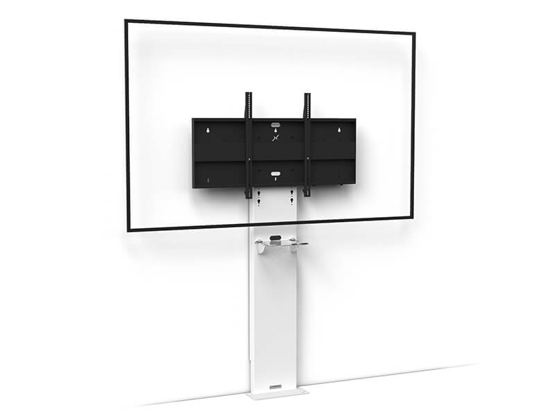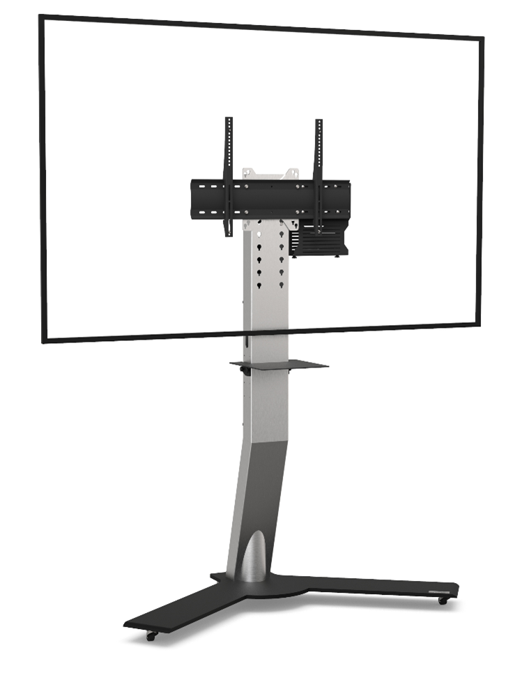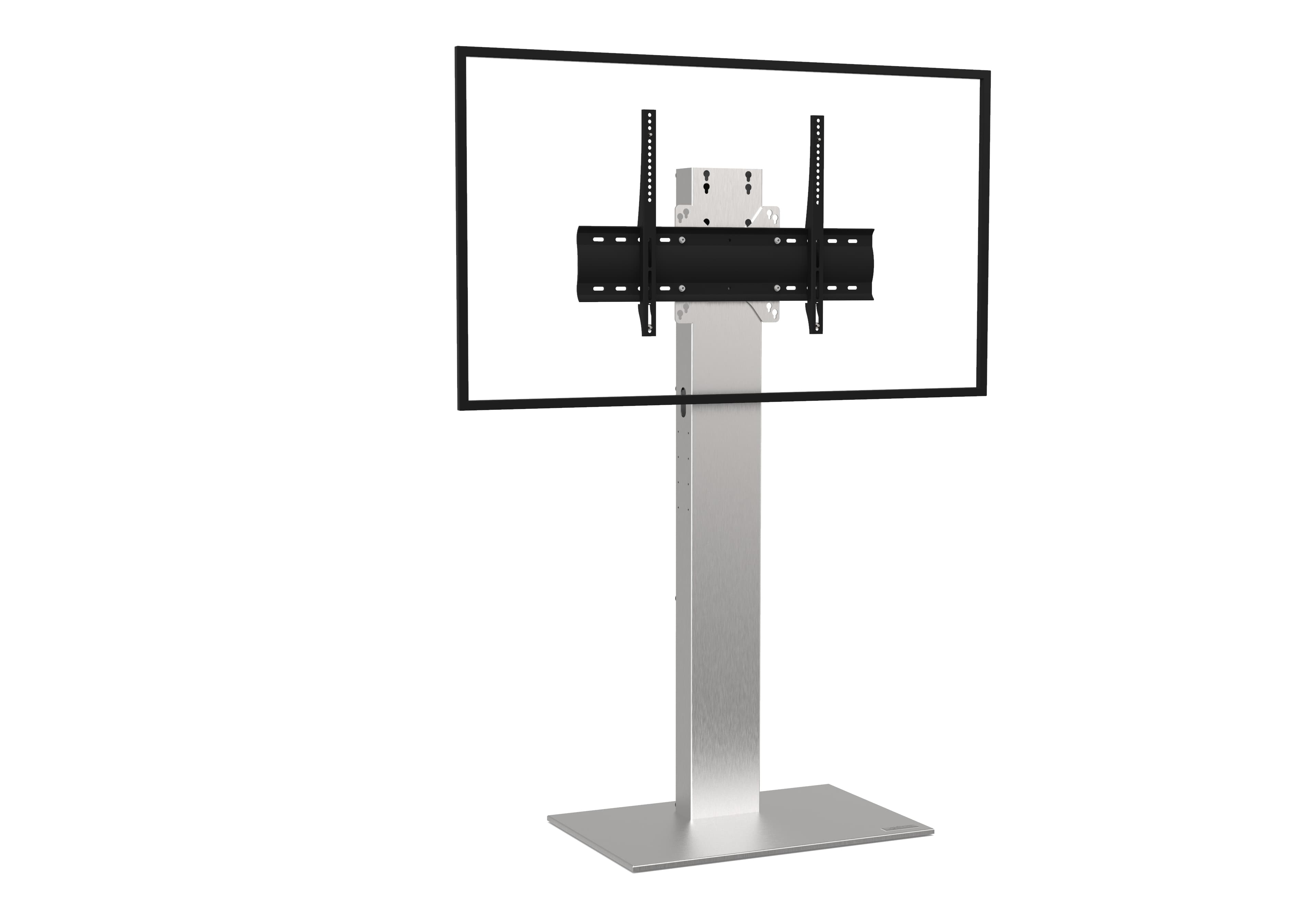 Für einen Bildschirm von 60-90; <85kg Sockel ist aus Stahl und Edelstahl Integrierte Kufen Säule ist aus Edelstahl mit Rückseite aus schwarzem Plexiglas VESA von 200 x 200 mm bis 800 x 400 mm Bildschirmachse (Höhe) 1400 mm bis 1815 mm Axeos Xenon Single Screen (60''-90'') VCPACKDas Axeos XENON Single-Screen ist die perfekte Wahl, wenn Sie einen imposanten Bildschirm im Bereich von 60 bis 90 Zoll stilvoll präsentieren möchten. Dieses Möbelstück wurde entwickelt, um große Bildschirme in ihrem vollen Glanz zu zeigen und bietet gleichzeitig Anpassungsmöglichkeiten für Ihre individuellen Bedürfnisse. Mit dem XENON haben Sie die Möglichkeit, aus verschiedenen Ausführungen und Optionen zu wählen. Sie können zwischen Modellen mit unterschiedlichen Verkleidungen und Zusatzausstattungen wie einem Sockel auf Laufrollen oder einem Soundbar-Träger wählen. Auf diese Weise können Sie sicherstellen, dass das Möbel perfekt zu Ihren Anforderungen passt. Der Sockel des Möbels ist aus robustem Stahl gefertigt und verfügt über eine Verkleidung aus gebürstetem Edelstahl, was dem Möbelstück eine moderne und hochwertige Optik verleiht. Wenn Sie Mobilität wünschen, stehen Modelle mit einem Sockel auf Kufen zur Verfügung, die es Ihnen ermöglichen, den Bildschirm leicht zu bewegen und neu zu positionieren. Ebenfalls besteht die Säule der Halterung aus gebürstetem Edelstahl, was nicht nur eine elegante Erscheinung bietet, sondern auch für Stabilität und Langlebigkeit sorgt. Die Rückseite des Möbels ist aus umweltfreundlichem schwarzem Plexiglas gefertigt, was nicht nur eine zeitgemäße Optik gewährleistet, sondern auch auf Nachhaltigkeit bedacht ist. Mit einem Gesamtgewicht von 130 kg für 60 bis 90 Zoll oder 145 kg für 75 bis 100 Zoll ist das Möbel stabil und dennoch flexibel genug, um es bei Bedarf zu bewegen.