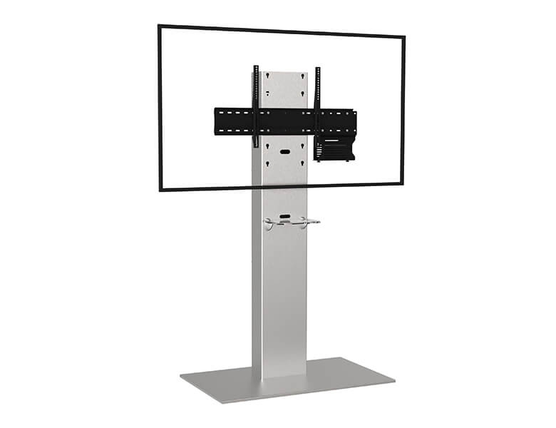 Bildschirmhöhe 140 cm - 160 cm 75 bis 100 Displays Gebürsteter Edelstahl Leicht zugängliche Plexiglas Rückseite (schwarz) Max. Gewicht 130 kg VESA 200 x 200 mm bis 1000 x 600 mm Kameraablage aus Plexiglass (SMCP/CPS) Universelle Codec Halterung (SCUV12) 3 Jahre Garantie Axeos Xenon Single Screen (75''-100'') Digital SignageDas XENON Single Screen von Axeos ist eine Standhalterung für ein Display zwischen 75 und 100 mit einer Gewichtskapazität von 130 kg. Die Säule und der Sockel sind aus gebürstetem Edelstahl und bieten einen hochwertigen Look für ihre Konferenzräume. Enthalten sind auch eine Kameraablage und eine universelle Codec Halterung.