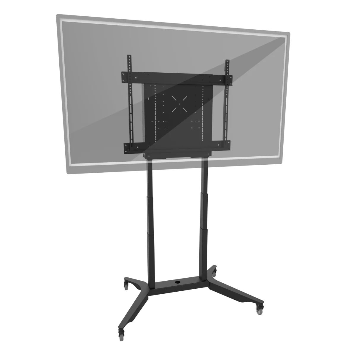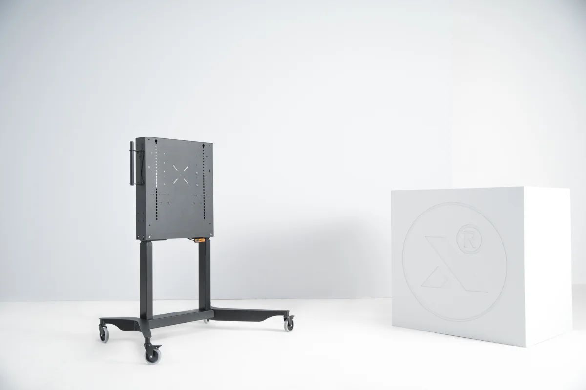Der e·Box II Mobile Stand ist eine motorisierte, höhenverstellbare Displayhalterung für Bildschirme bis 98 und 140 kg. Die Höhenanpassung erfolgt bequem per kabelgebundener Fernbedienung mit drei speicherbaren Voreinstellungen. Ein Hub von 650 mm ermöglicht barrierefreien Zugang – ideal auch für Rollstuhlfahrer. Die integrierte doppelte Kollisionsschutz-Technologie sorgt für maximale Sicherheit bei der Verstellung. Große 100-mm-Rollen garantieren hohe Mobilität, während eine optionale, abschließbare Abdeckung manipulationssicheren Stauraum bietet.
