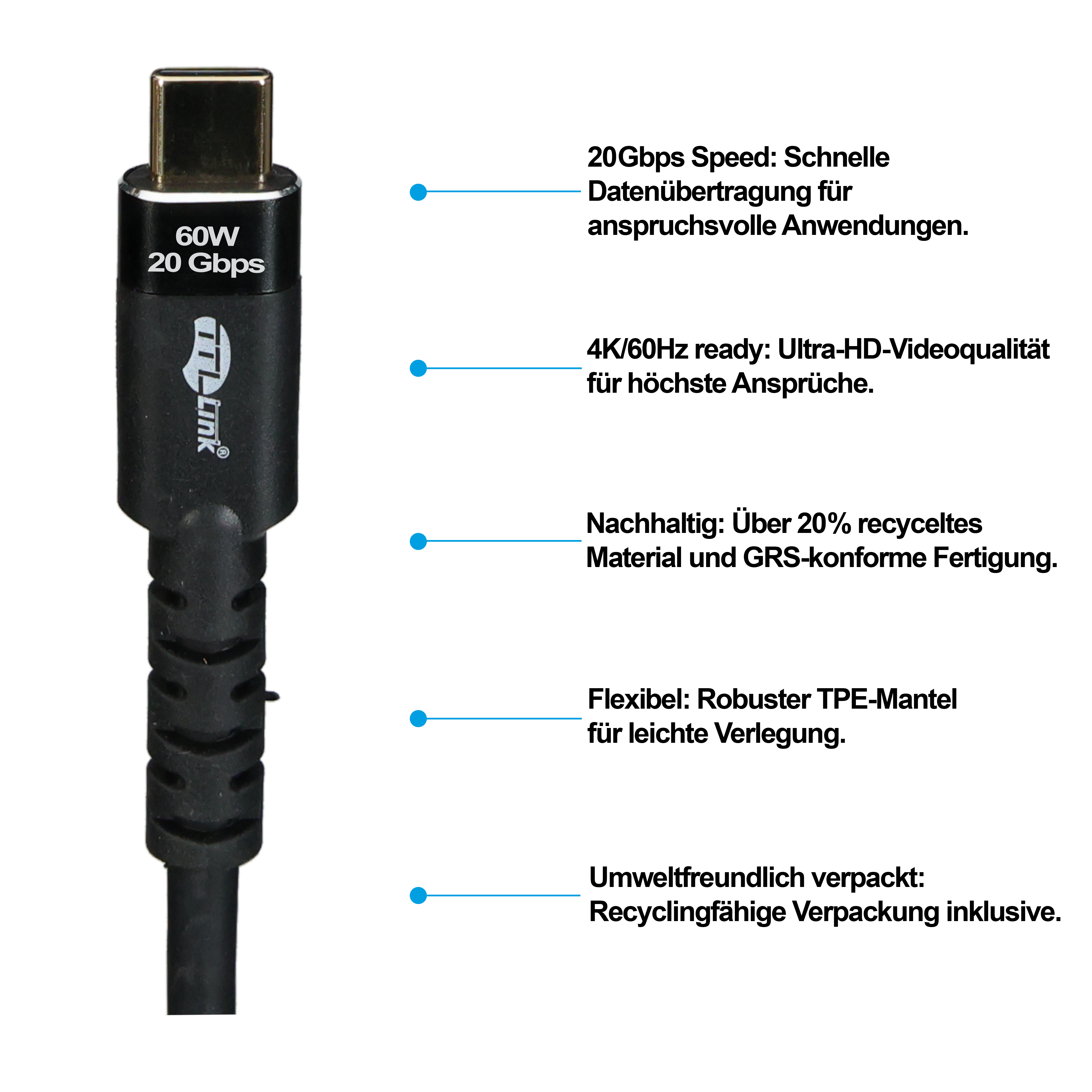 TTL USB-C Kabel Fair Series, 5,0m USB4 2x2, 20Gbps, 60W/3A, 4K60Hz