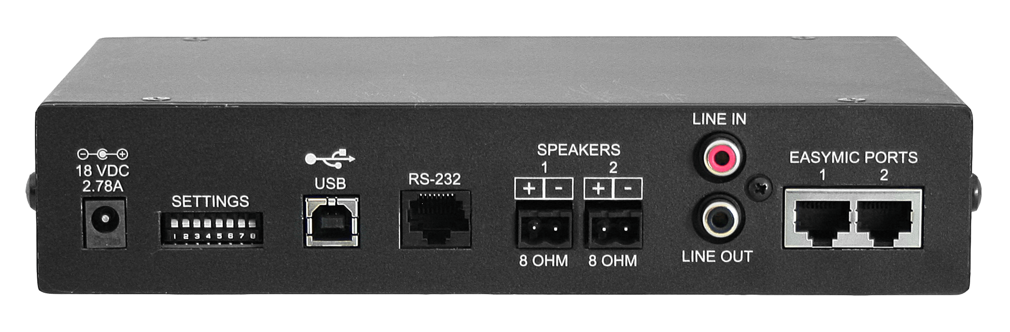 Der Vaddio EasyUSB Mixer/Amp ist ein Audio-Mischer, der eine hervorragende Unterstützung bei professionellen PC basierenden Audiokonferenzen darstellt. Dank der Verstärkerausgänge (2x20W) können externe 4/8-Ohm Lautsprecher angeschlossen werden, außerdem verfügt der Vaddio EasyUSB Mixer/Amp über analoge Line-Level-I/O-Schnittstellen, die die Integration in externe AV-Geräte wie Videokonferenz-Codecs oder LCD-Displays ermöglichen. Darüber hinaus unterstützt der Vaddio EasyUSB Mixer/Amp bis zu zwei EasyTALK™ MicPOD™ Mikrofone.